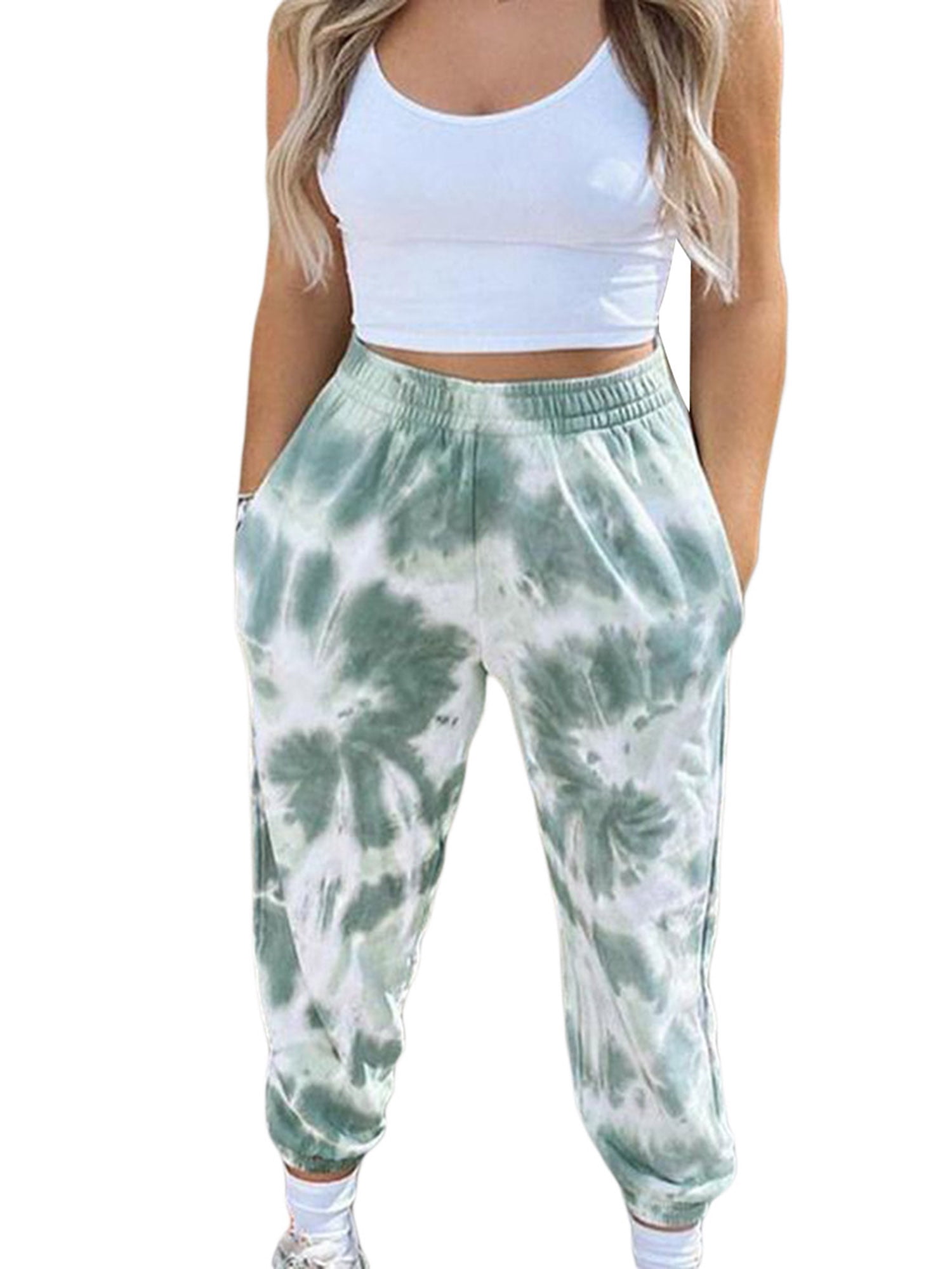 Lazybaby Women S Tie Dye Side Pockets Elastic Band High Waisted Sweatpants Joggers Trousers Pants Workout Sportswear Bottoms Loose Fit Long Stretchy Daily Wear Walmart Com